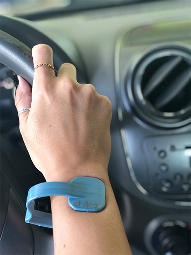 A melhor maneira de aplicar pressão no ponto PC6 é com movimentos suaves e circulares com os polegares. Entretanto, a ansiedade pode aparecer em ocasiões onde estaremos com as mãos ocupadas em atividades, como dirigir, trabalhar, etc, e por isso CHILLAX foi criada.